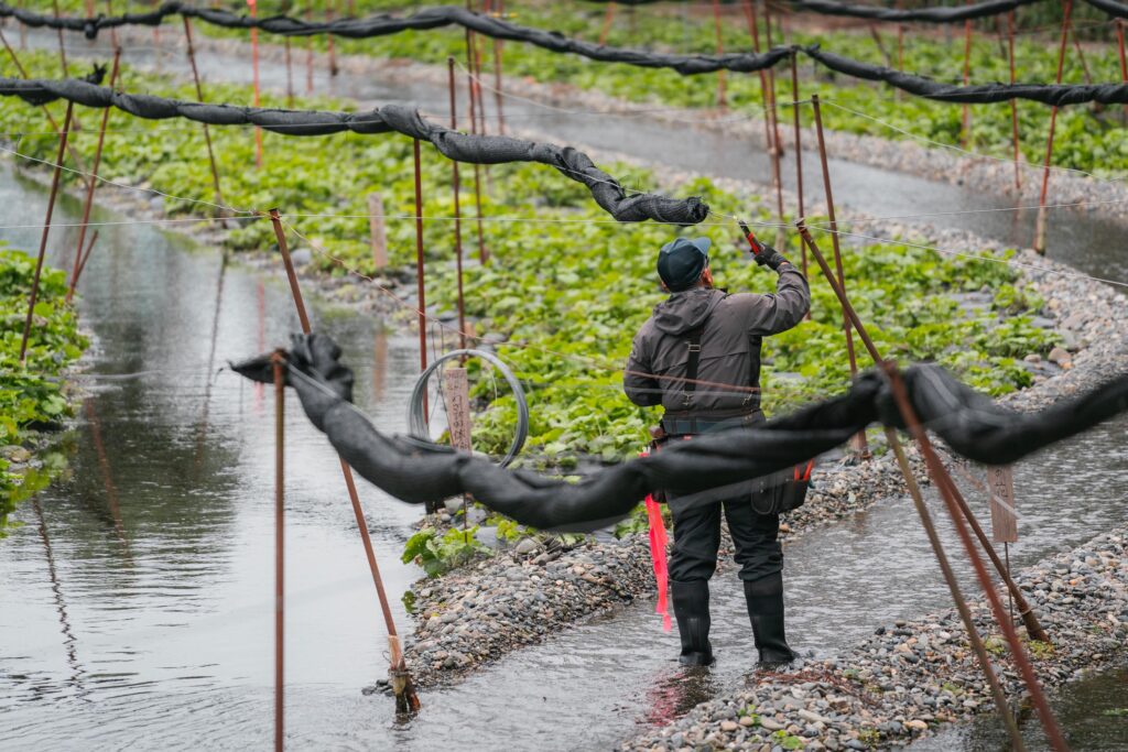 Prima di raggiungere il centro di Matsumoto, facciamo una tappa alla fattoria di wasabi Daio, la più grande azienda agricola di wasabi al mondo. Le piante di wasabi, infatti, per crescere hanno bisogno di acque purissime e ricche di minerali: una condizione perfettamente soddisfatta in questa zona, ai piedi delle montagne. La fattoria è operativa dal 1917 ed è una meta molto amata soprattutto dai giapponesi — non a caso incontriamo pochissimi turisti stranieri.